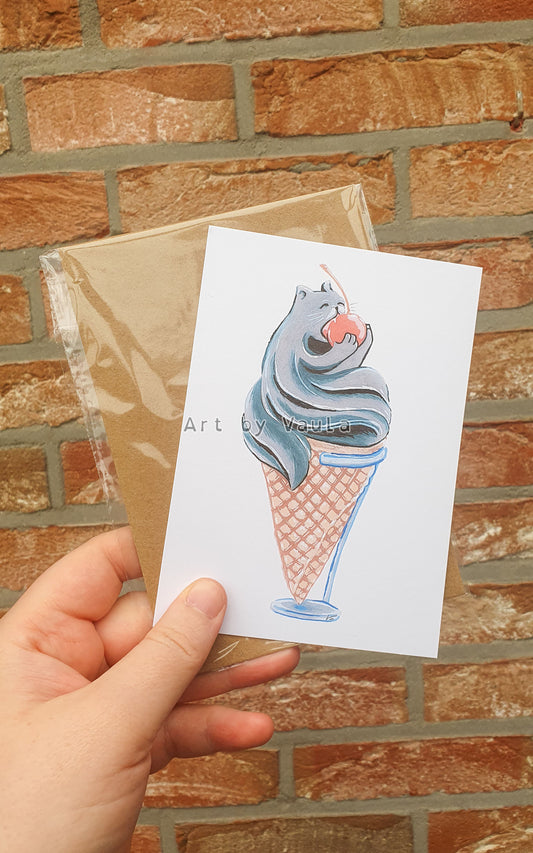 Black sesam Ice cream Kitty card