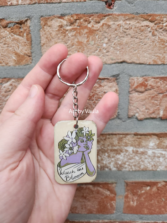 Watch me Bloom - wood keychain