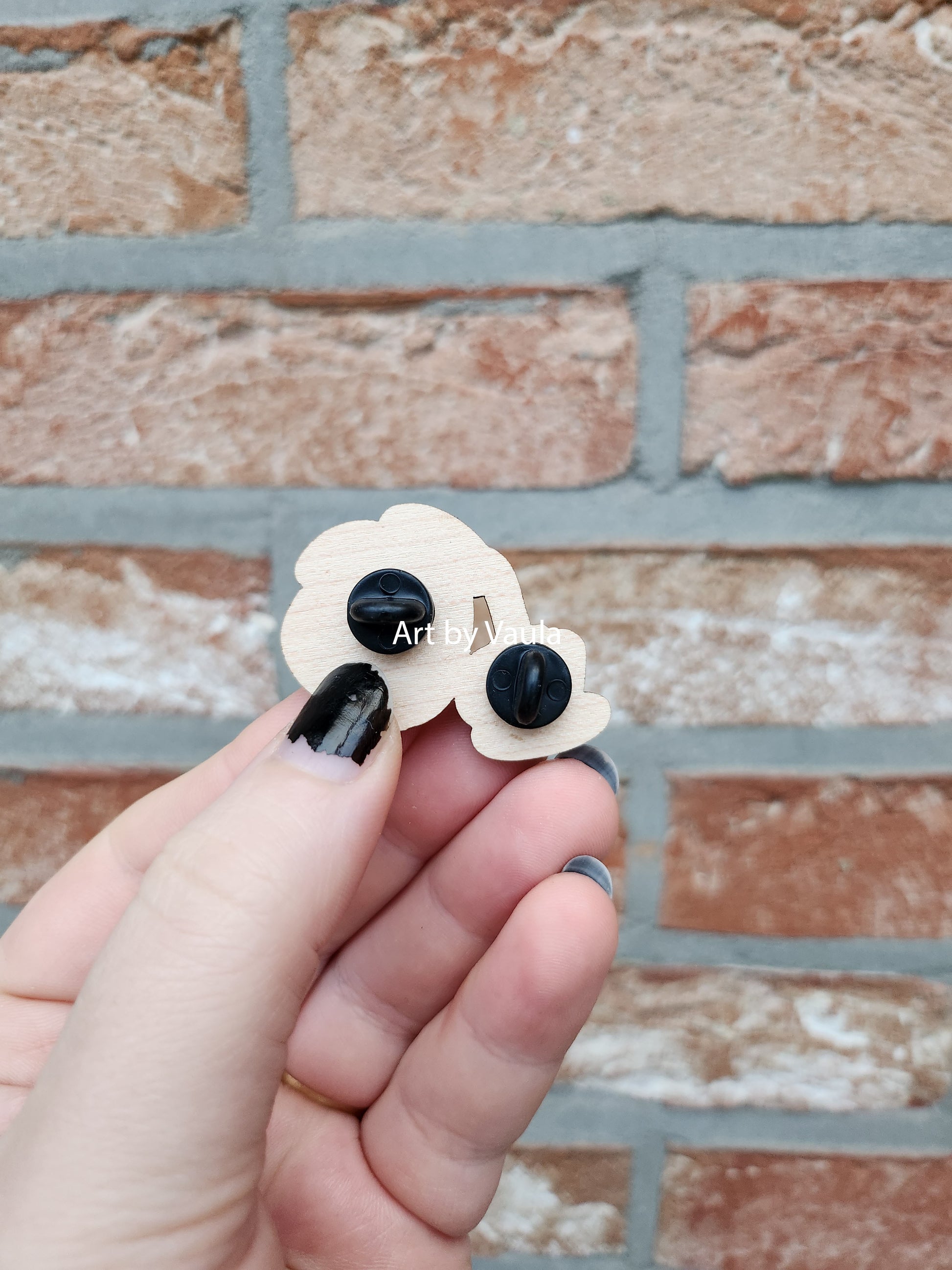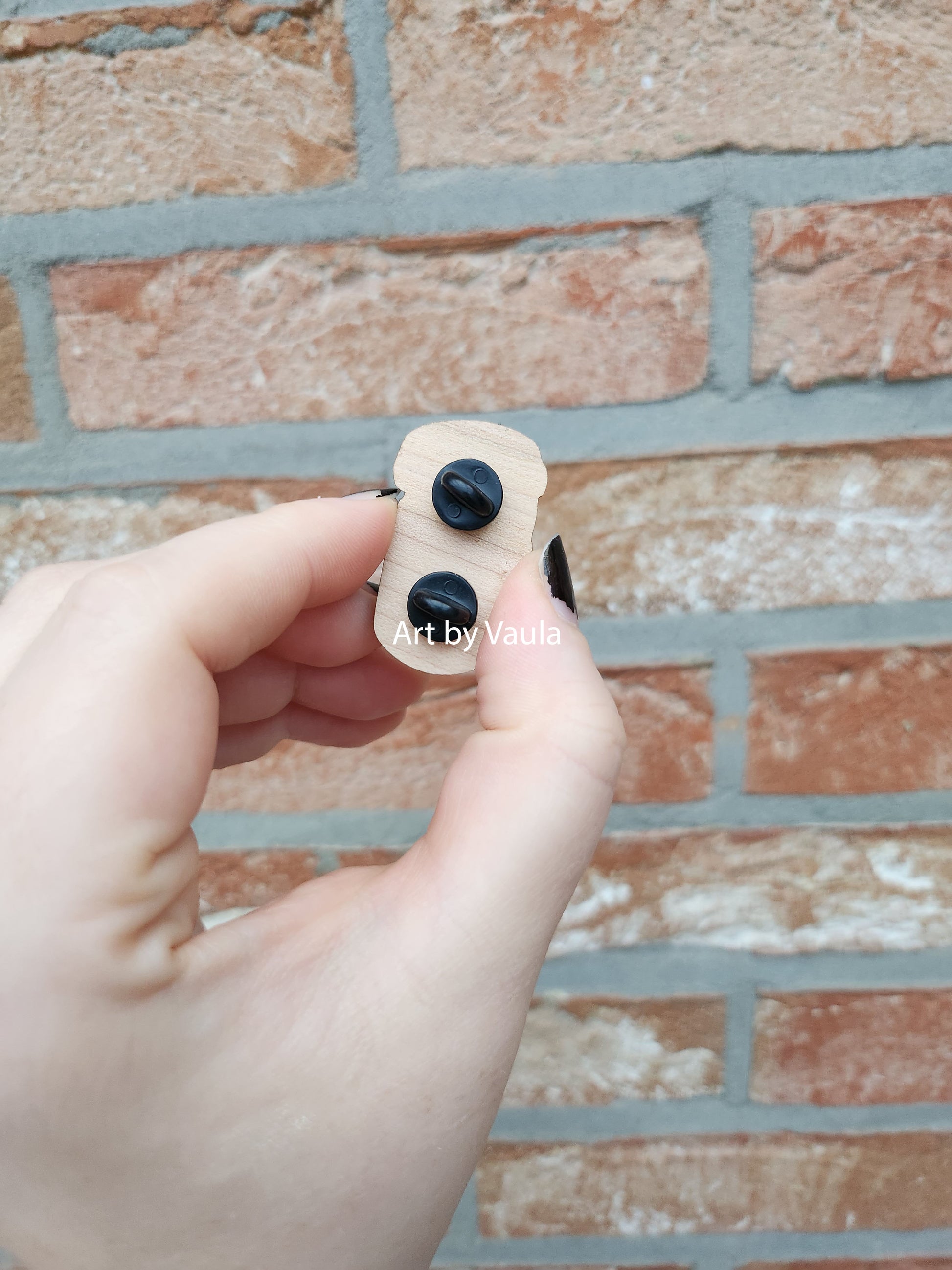 Wood pin to put on your jacket, shirt or bag.